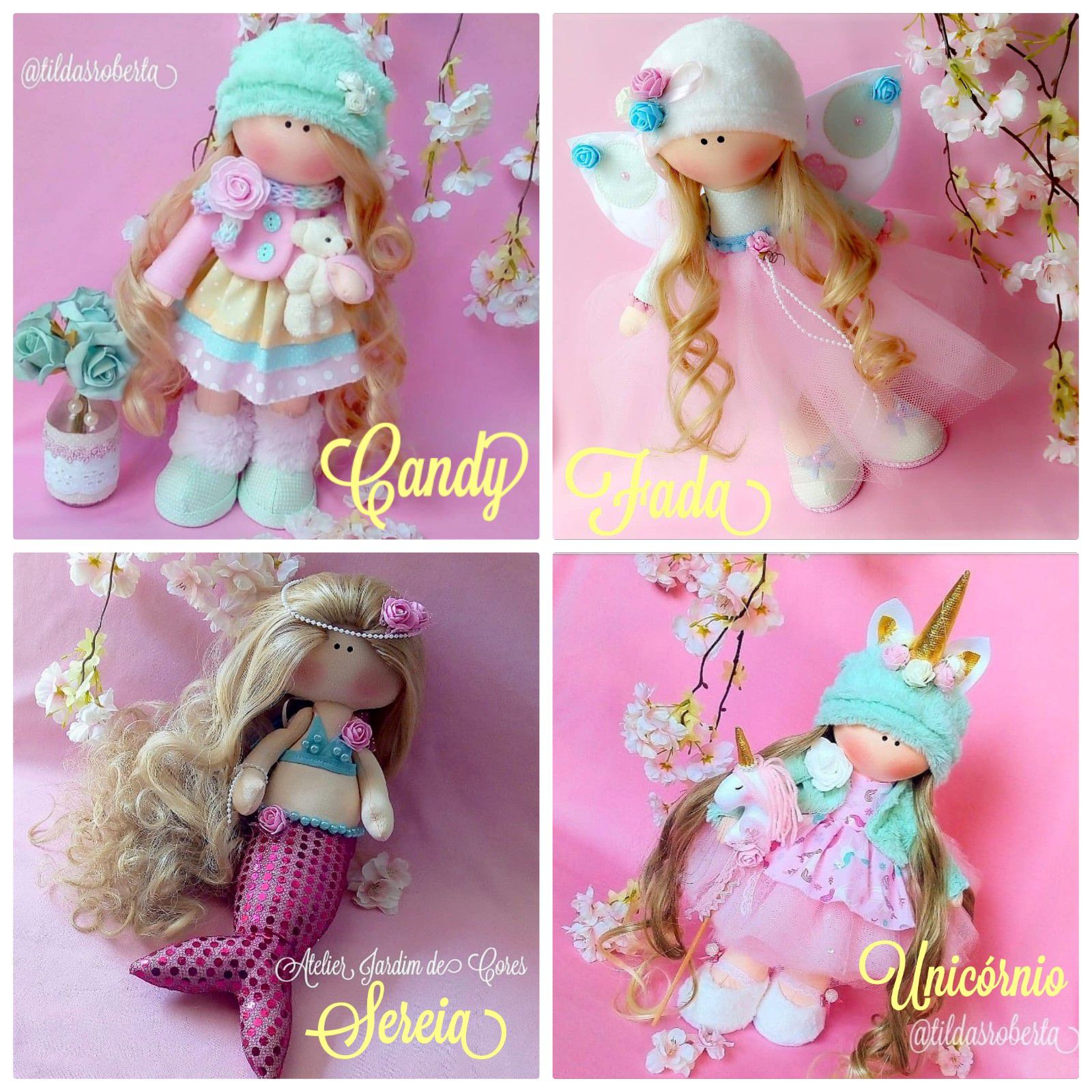 Bonecas da Coleção: Candy, Unicórnio, Fada (todas de 40cm com pernas articuladas) e Sereia!